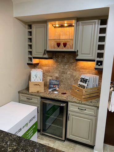 *Refrigerator, beverage cooler, tile backsplash and accessories